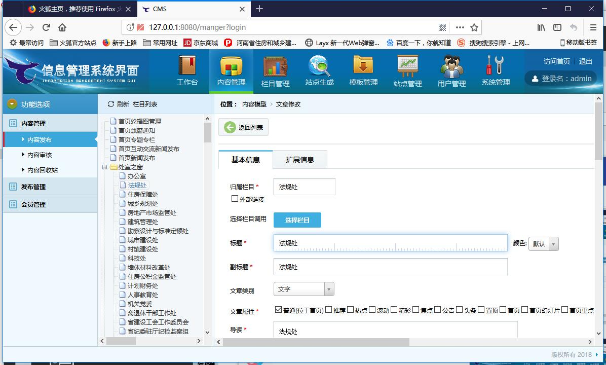 5)權(quán)限管理:根據(jù)需求對相關(guān)人員分配權(quán)限,最小可到對某一個文章的管理權(quán)。