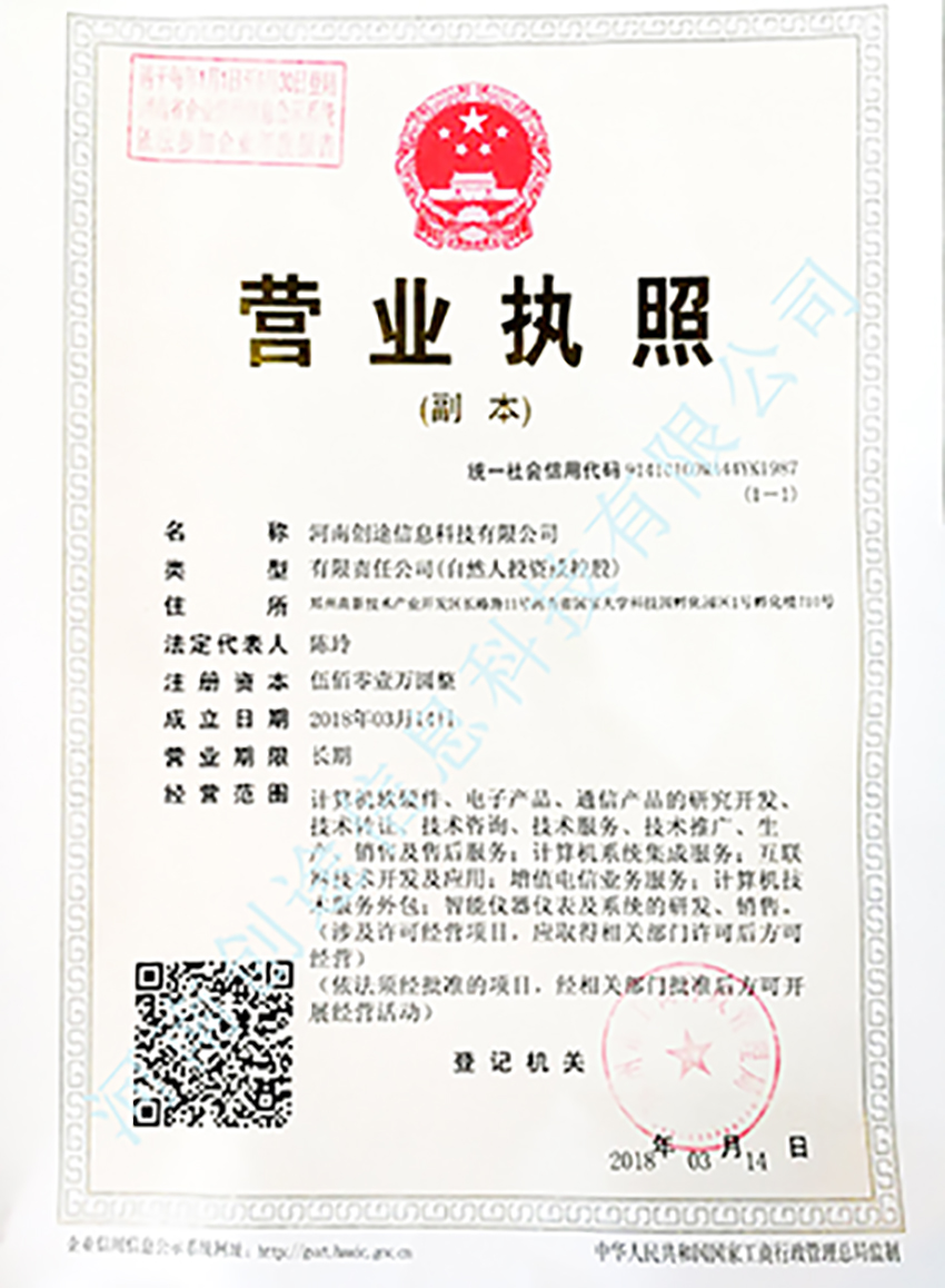 河南創(chuàng)途信息科技有限公司成立于2018年,是一家專注于計(jì)算機(jī)應(yīng)用軟件產(chǎn)品研究、開發(fā)、生產(chǎn)及銷售的認(rèn)證通過的雙軟企業(yè), 公司自成立以來,始終堅(jiān)持“人才為本、誠信立業(yè)”的經(jīng)營原則。